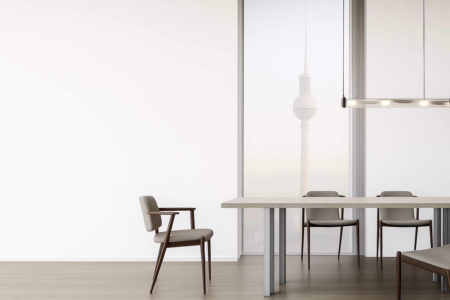 Moderner Meetingraum am Alexanderplatz mit Smartboard, Highspeed-WLAN und Getränken inklusive. Stunden- oder tageweise buchbar.